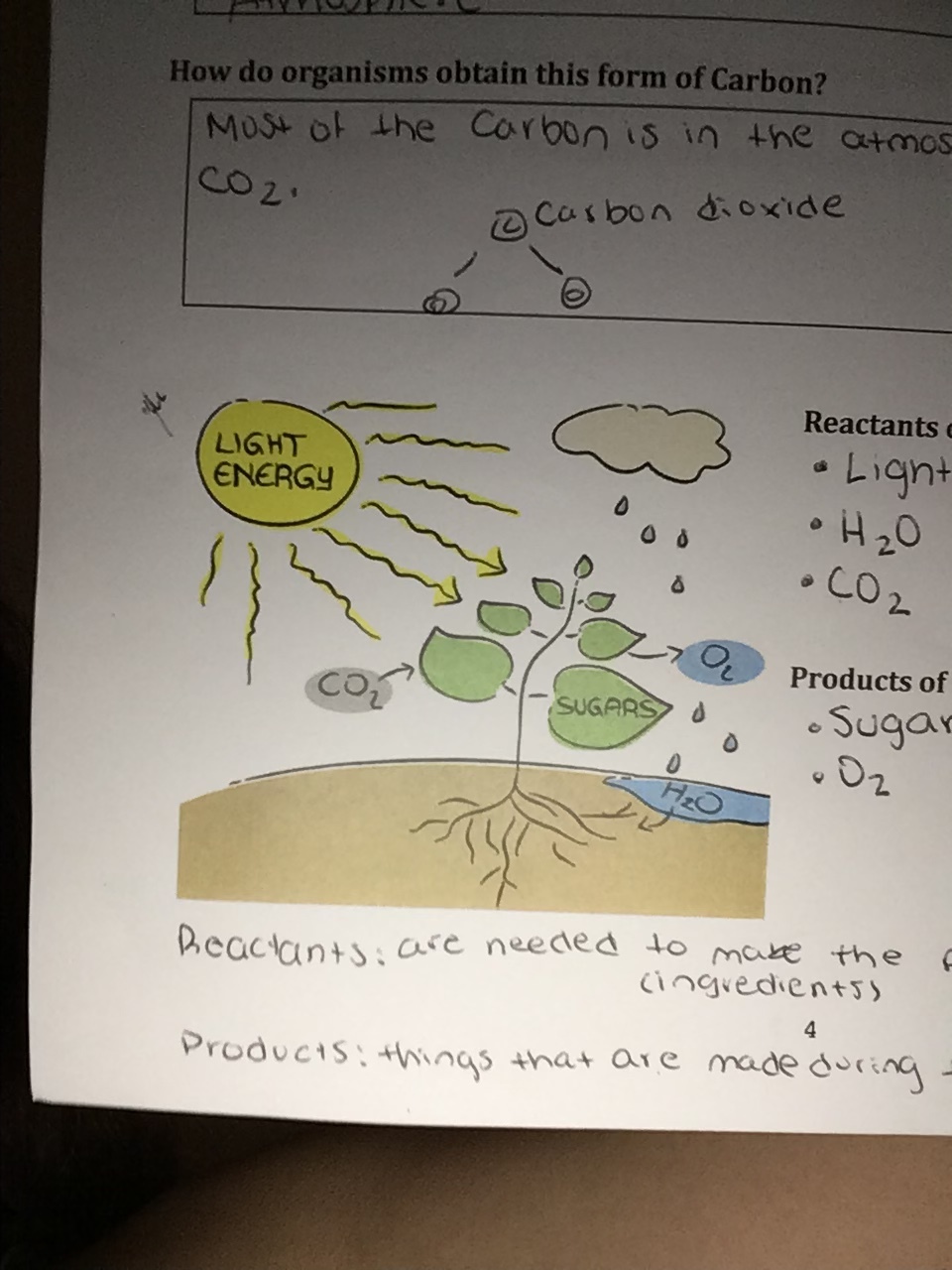 Products of photosynthesis