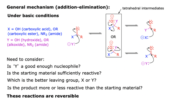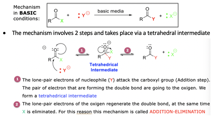 Draw the mechanism for carboxyl substitution in basic conditions ?