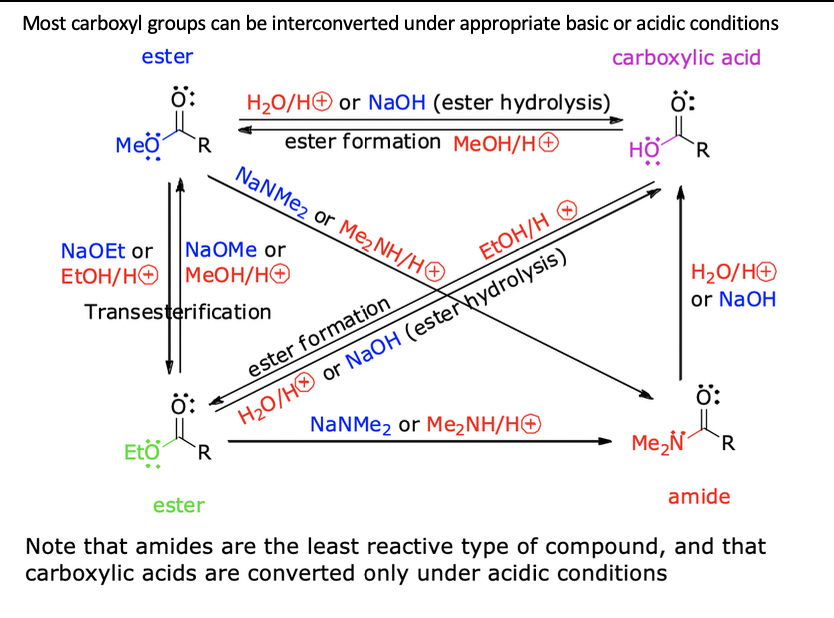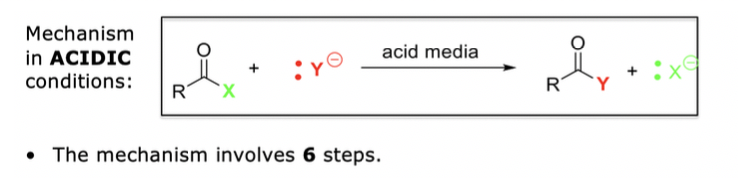 Draw the general mechanism for carboxyl substitution under acidic conditions?