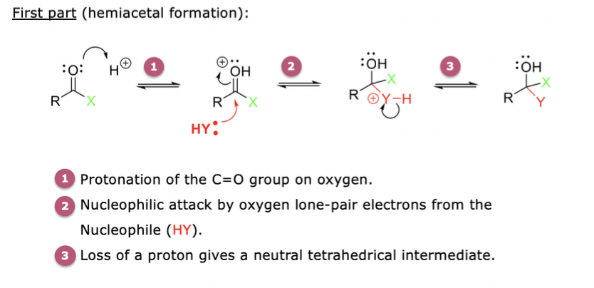 Whats the first part of the mechanism of carboxyl substitution under acidic conditions?