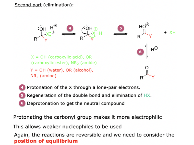 Whats the second part of the mechanism of carboxyl substitution under acidic conditions?