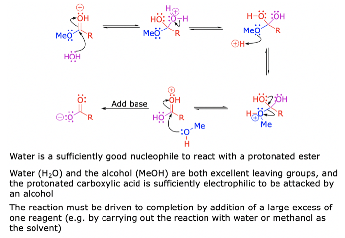 Draw the mechanism of acid-catalysed ester hydrolysis to carboxylic acids