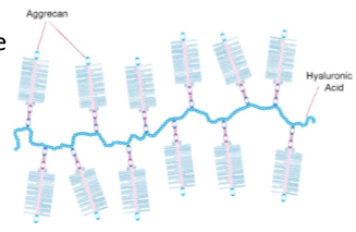 * aggrecan has loads - found cartilage as high osmotic pot = lots water = spongey = walk w/o pain