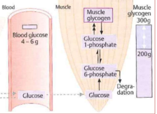 formation + breakdown glycogen in muscle
