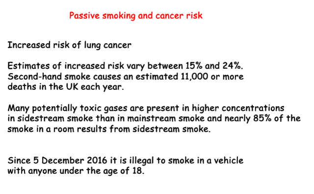 Describe the relation between passive smoking and cancer risk.