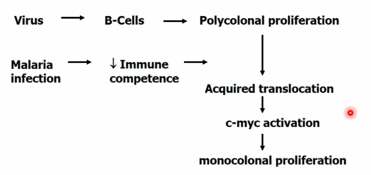 describe how EB virus leads to development of Burkitt’s lymphoma