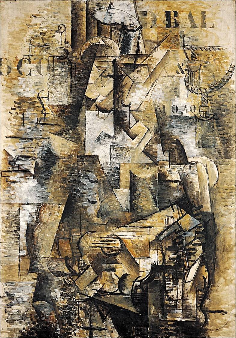 GEORGES BRAQUE, The Portuguese, 1911. Oil on canvas, 3’ 10 1/8” x 2’ 8”. Kunstmuseum, Basel (gift of Raoul La Roche, 1952).