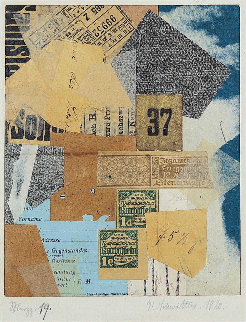 KURT SCHWITTERS, Merz 19, 1920. Paper collage, 7 1/4” x 5 7/8”. Yale University Art Gallery, New Haven, (gift of Collection Société Anonyme).