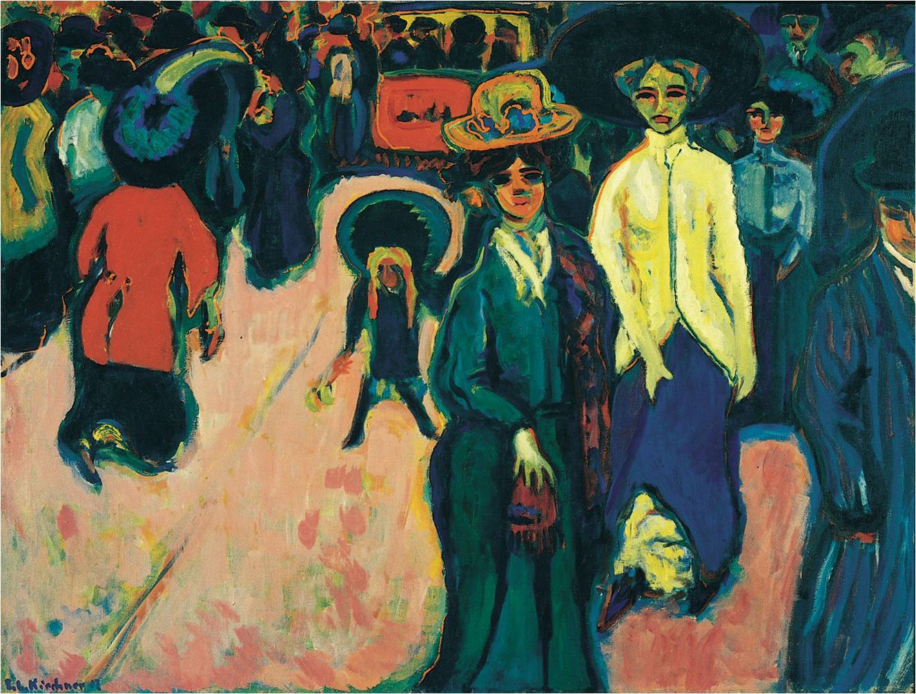 ERNST LUDWIG KIRCHNER, Street, Dresden, 1908 (dated 1907). Oil on canvas, 4’ 11 1/4” x 6’ 6 7/8”. Museum of Modern Art, New York.