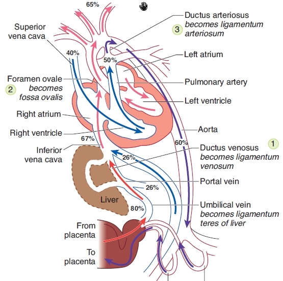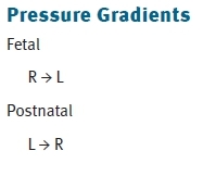 The shunting of blood through foramen ovale and ductus arteriosus occurs because of right-to-left pressure gradient.