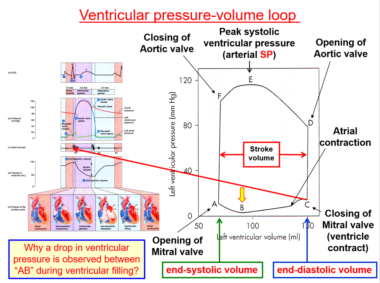 -At the end of segment B-C the maximal amount of blood is in the ventricles, this occurs at the end of ventricular diastole and is termed the end diastolic volume (EDV)