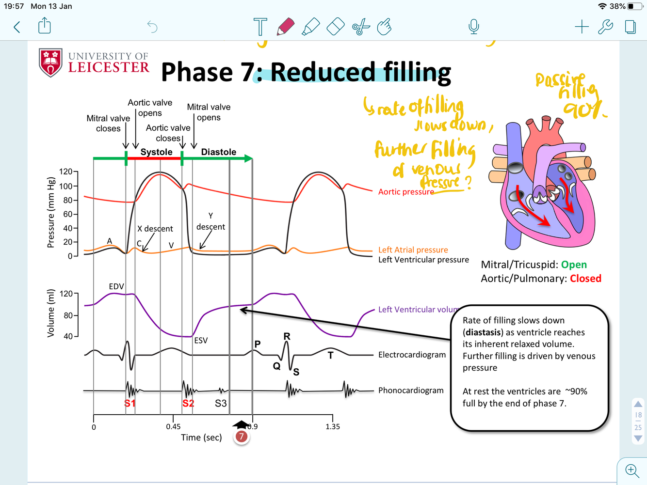 rateof filling slows down diastasis as ventricle reaches its inherent relaxed volume, further filling is driven by venous pressure