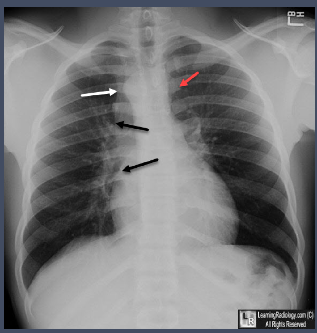 Enlargement of the left pulmonary artery is secondary to the same effect, causing post stenotic dilatation.