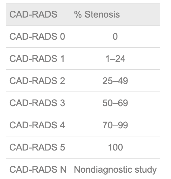 Stenosis of >70% (CAD-RADS ≥4) is considered significant in all coronary arteries except left main, in which threshold is 50%.