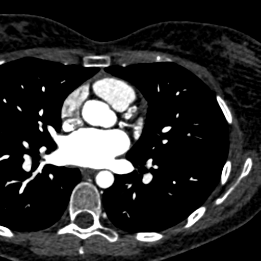 Axial MIP image shows common origin of RCA and left main coronary artery from left aortic sinus. Anomalous inter-arterial course of RCA between aorta (AO) and pulmonary artery (PA).