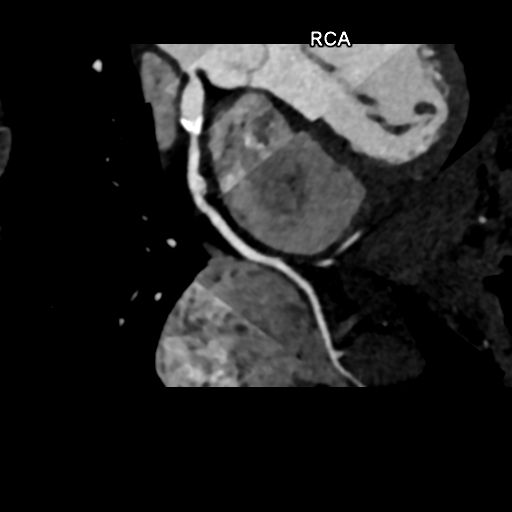 Right Coronary Artery (RCA): 2 fusiform aneurysms without thrombosis- 1) proximal segment 15 mm long and 8 mm in diameter with mural calcification and 2) mid segment 7 mm long and 6.5 mm in diameter at the origin of a small AM branch.