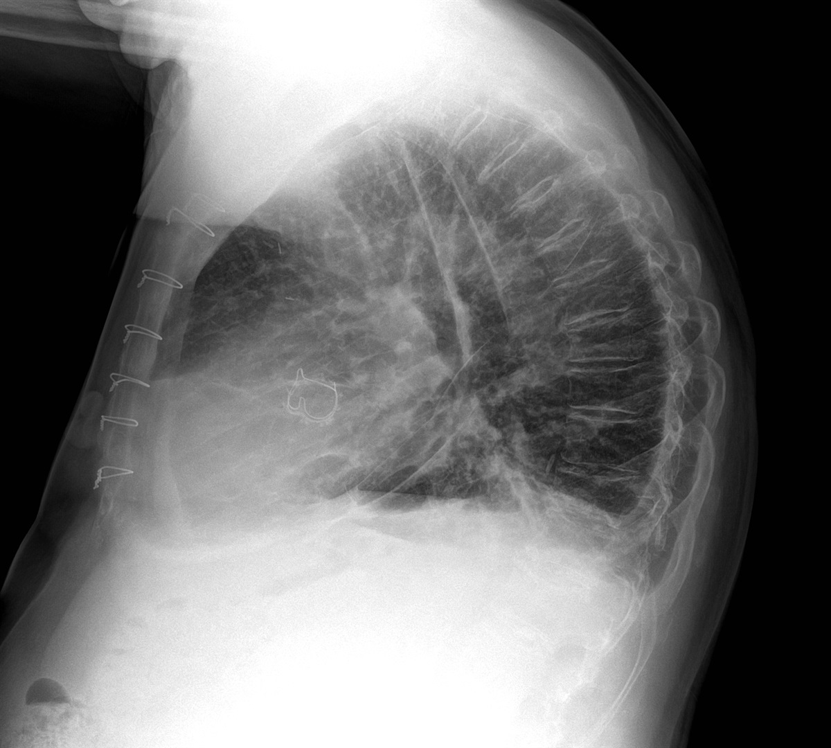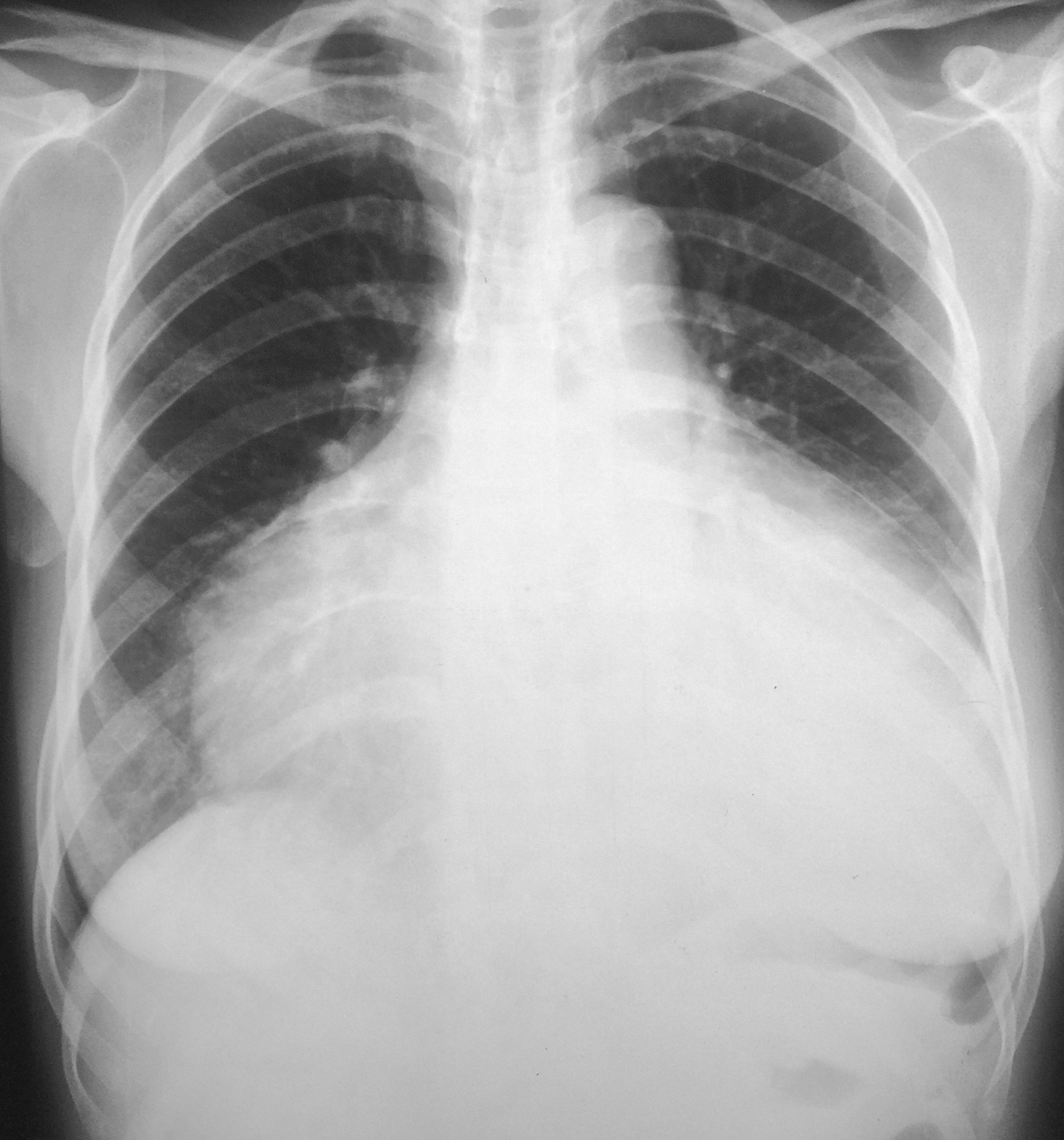 The patient underwent excision of this mass via a VATS procedure. Histology demonstrated a pericardial (mesothelial) cyst.