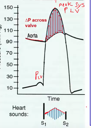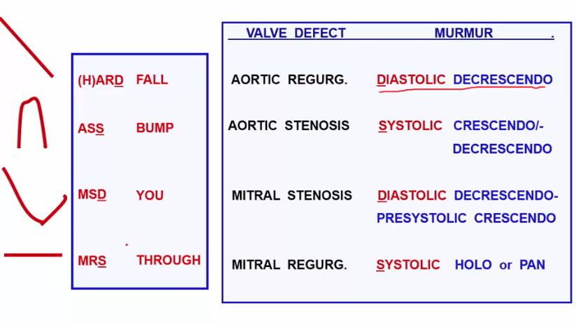 This will be a crescendo decrescendo murmur as initially when the valve is opening up there is less blood flow across it and this blood flow increases, hence causing the sound of the murmur to increase and then it decreases as the blood flow decreases.