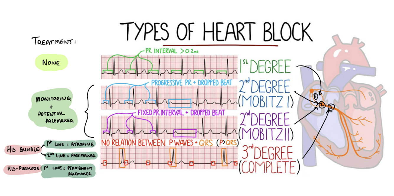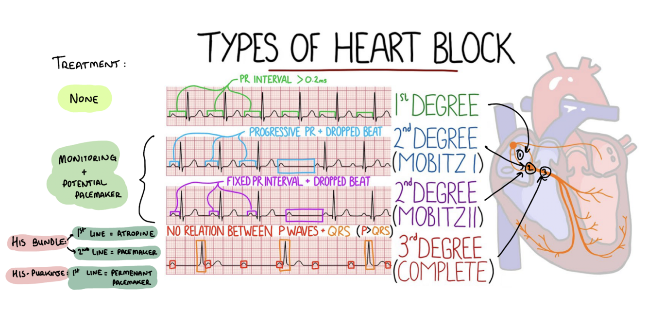 What heart block results in a R wave in V1 and a slurred S wave in V6?