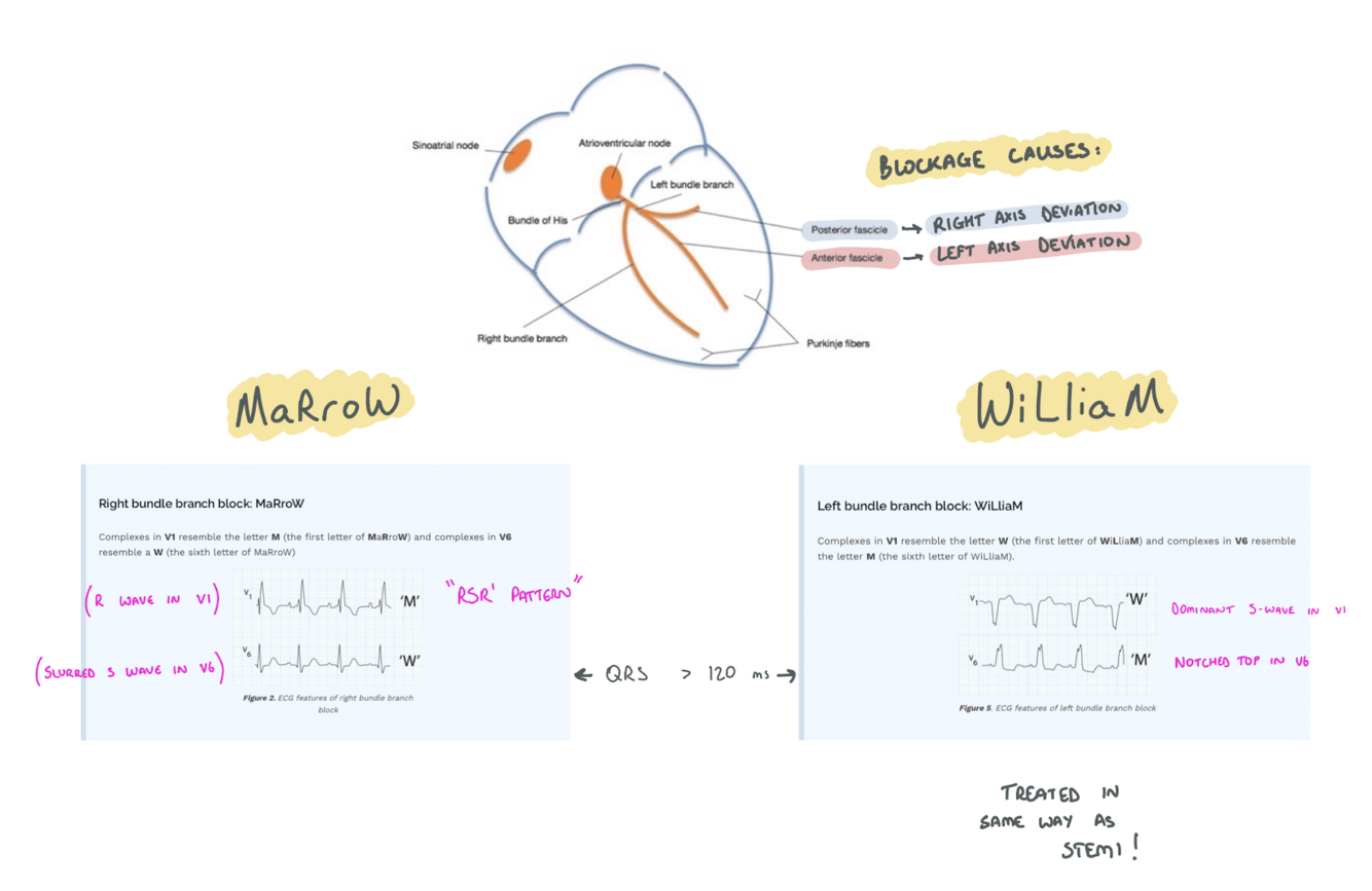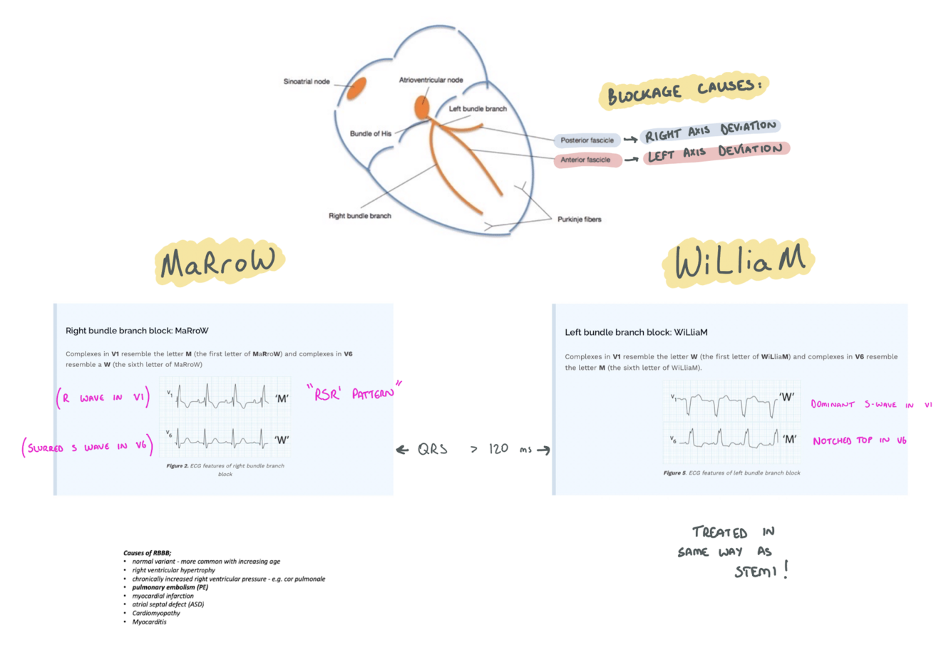if the posterior fascicle of the left bundle branch becomes blocked, what kind of deviation does this result in?