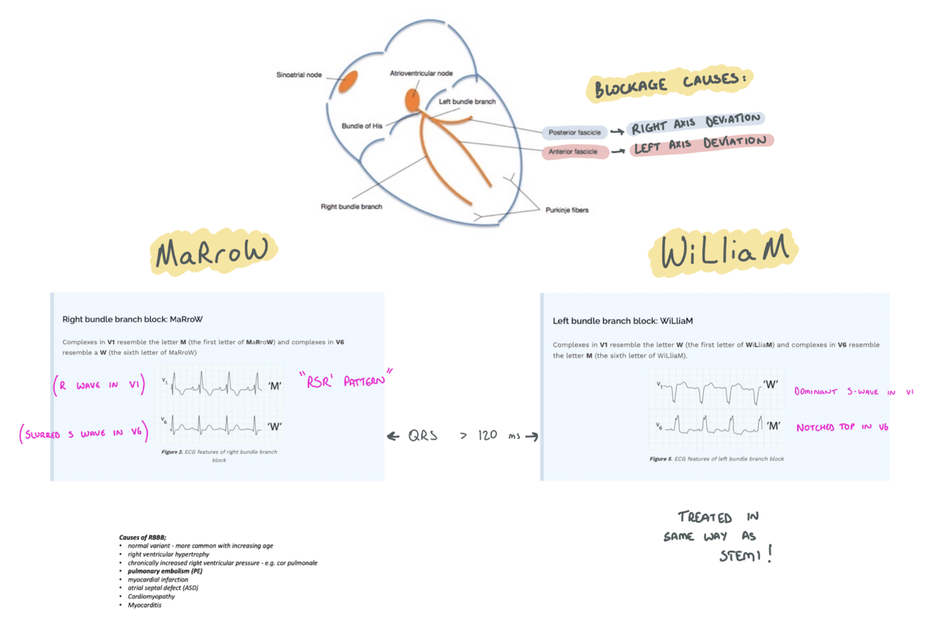 Does a PE have the potential to cause a left or right sided bundle branch block?