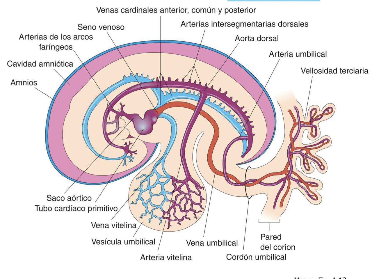 Tres pares de venas drenan el primordio del corazón en embrión de 4 semanas, estas son: