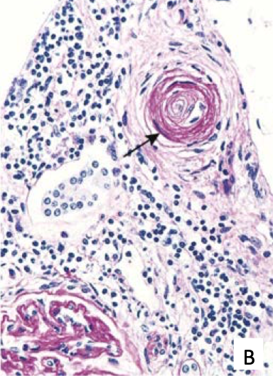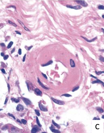 Hyaline arterioloscerosis due to HTN or DM