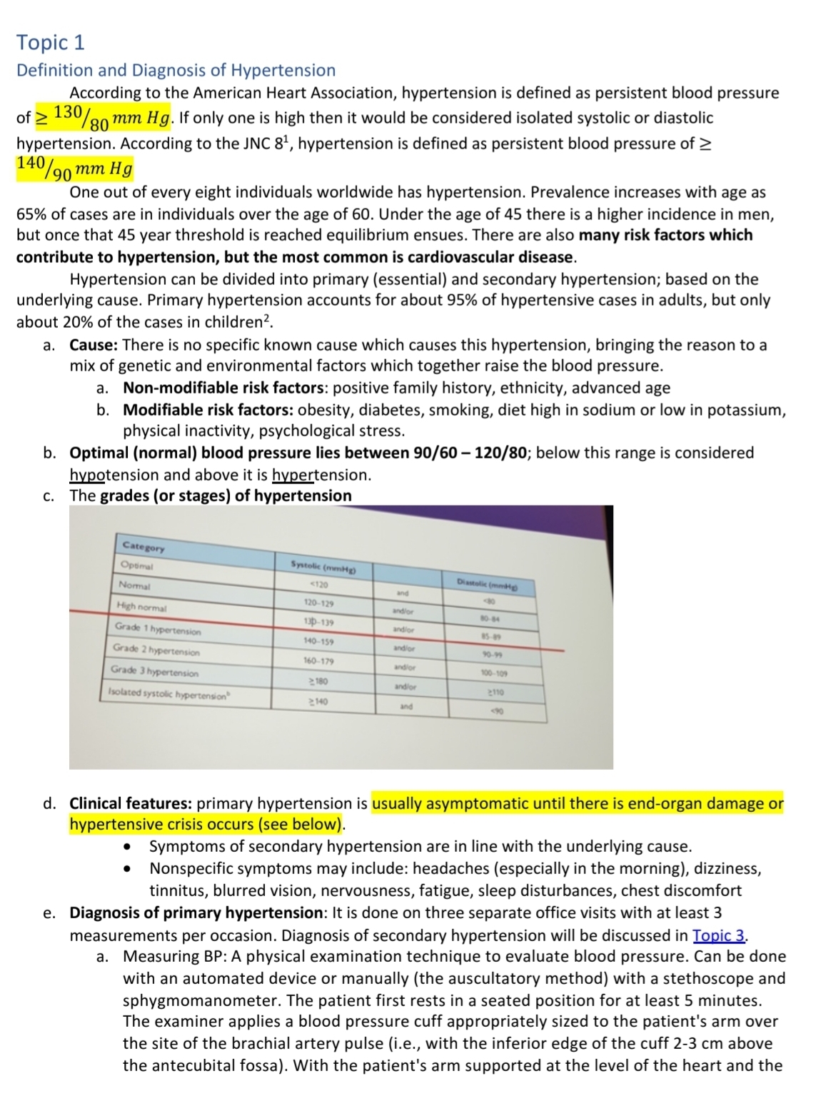 Definition and diagnosis of hypertension.