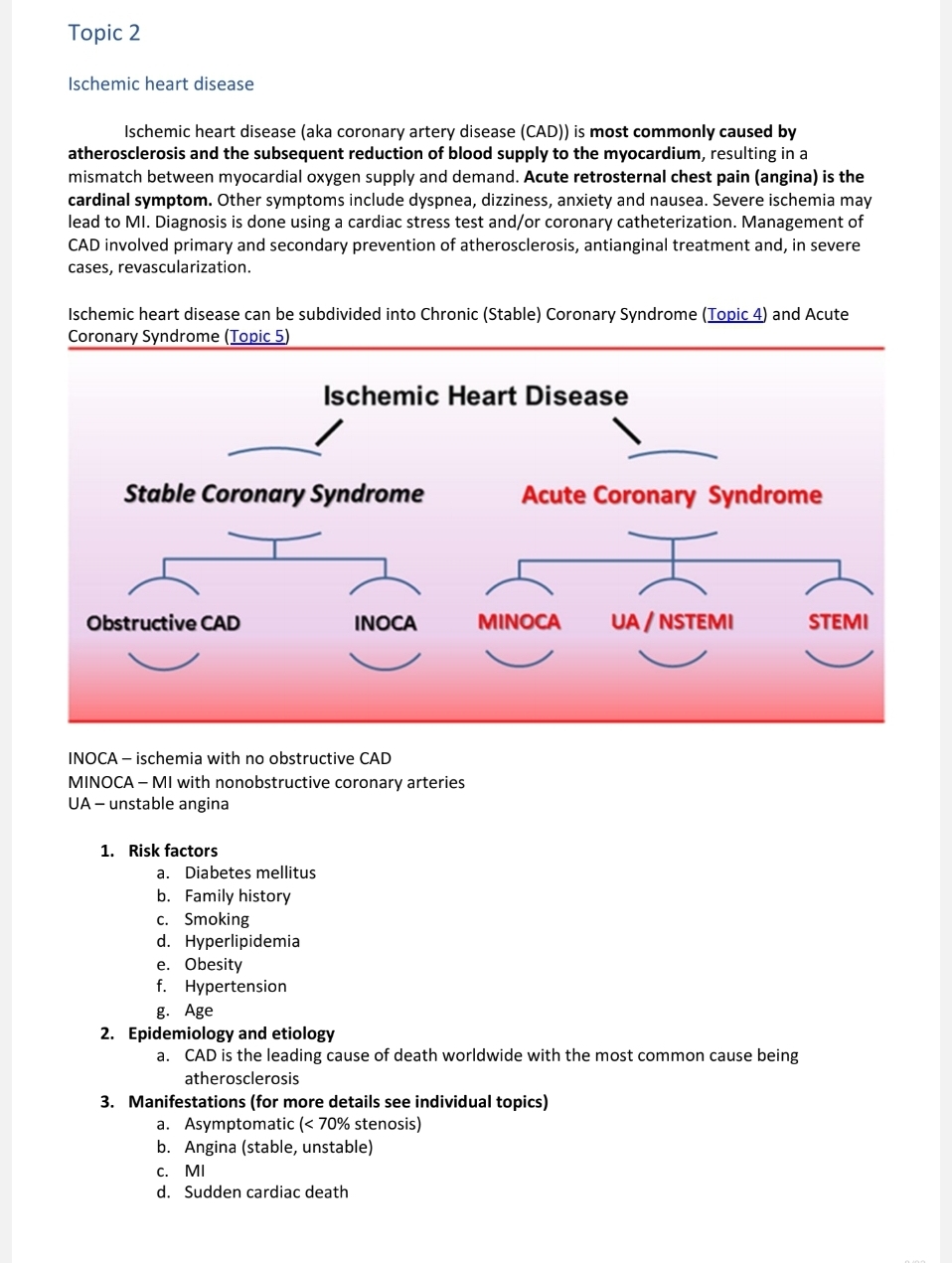 Ischemic heart disease (risk factors, manifestations, diagnosis).