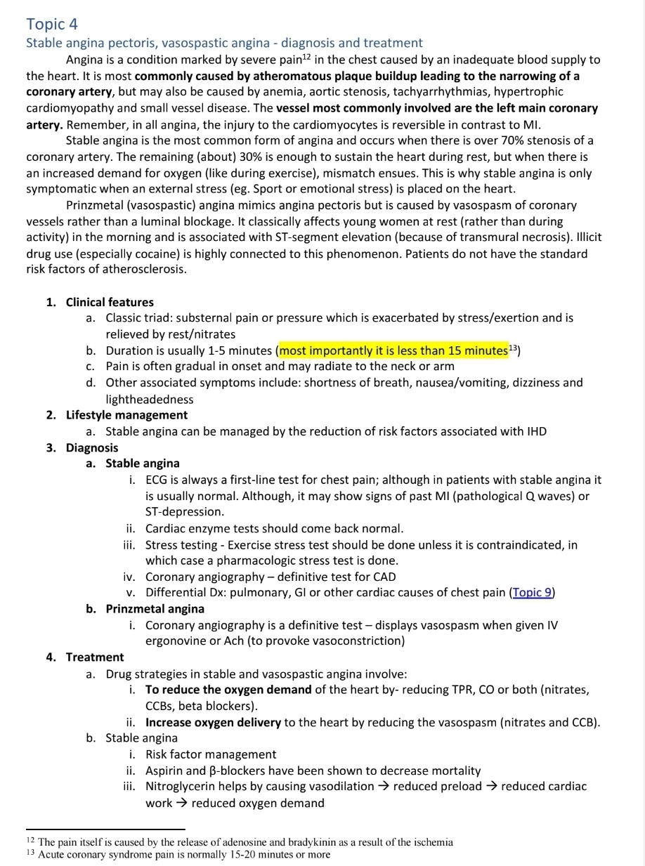 Stable angina pectoris, vasospastic angina (diagnosis and treatment).