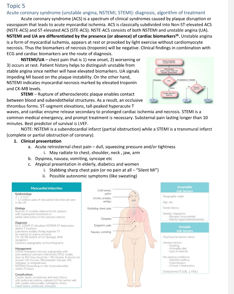 Acute coronary syndrome (unstable angina, NSTEMI, STEMI): diagnosis, algorithms of the