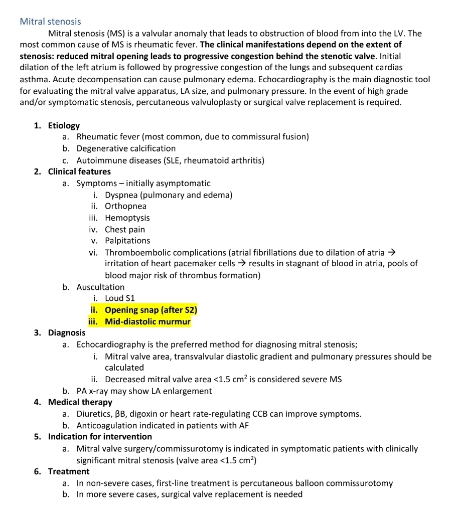 a. Signs and symptoms (also indications for valve replacement): SAD (3 major Sx)