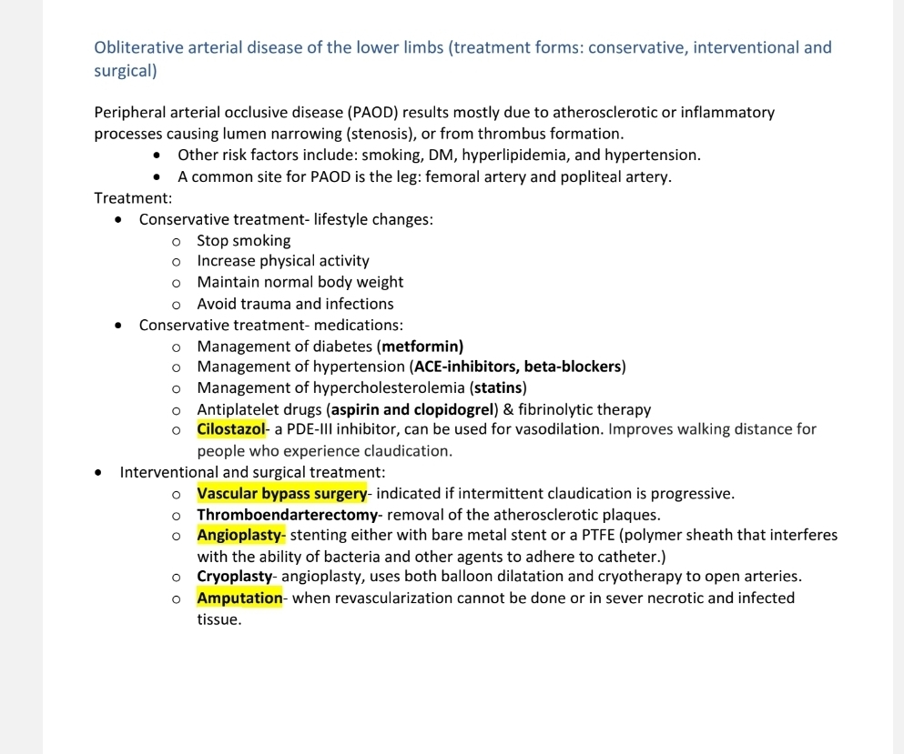Obliterative arterial disease of the lower limbs (treatment forms: conservative, interventional
