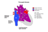 ASD is a hole in the septum between the two atria causing blood to flow from L to R
