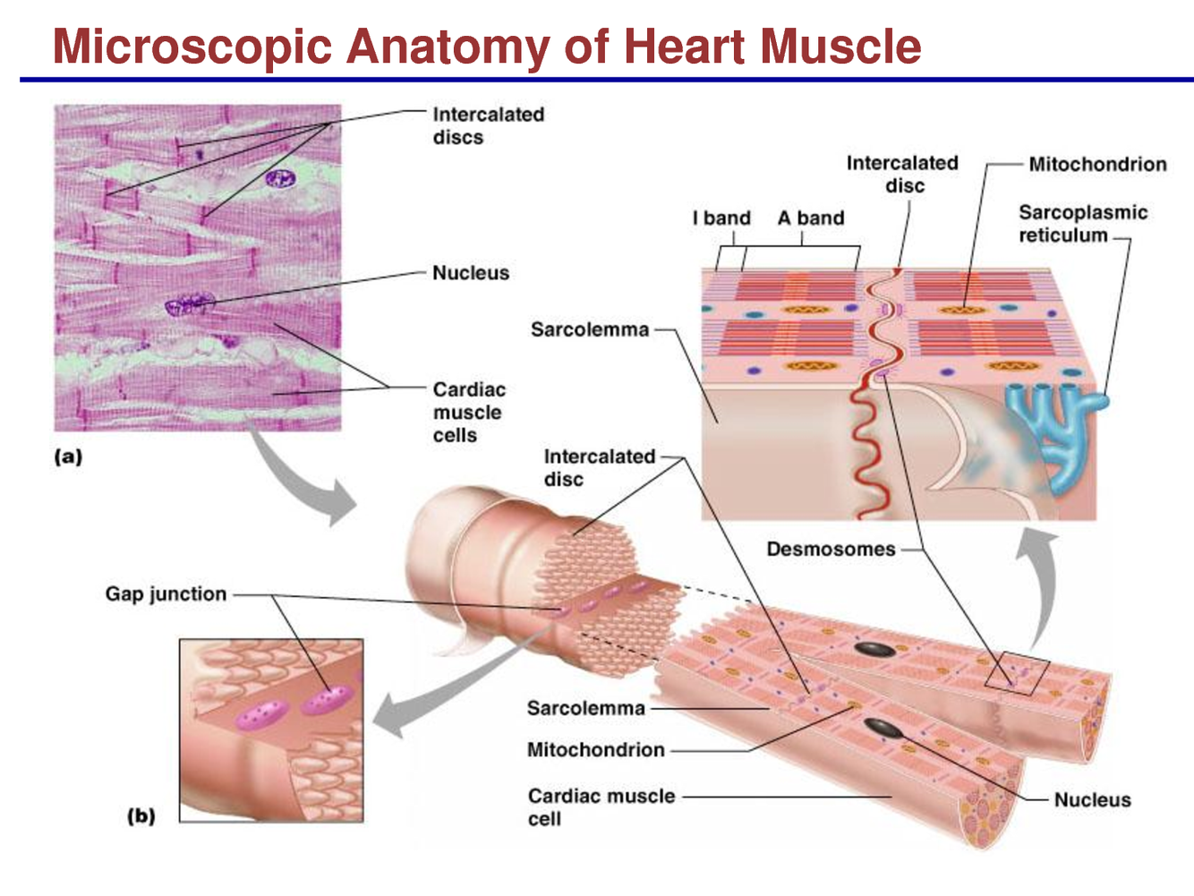 Mitochondria - heavily populated in Cardiac muscle to aid in energy production, cannot fuction without oxygen