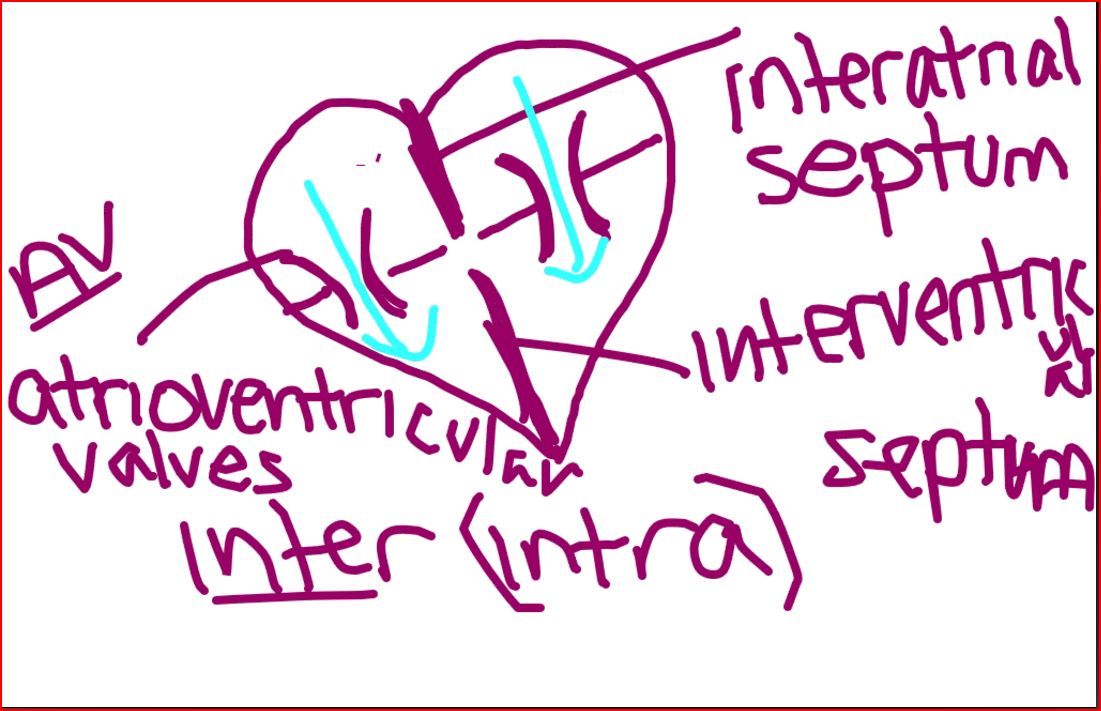 Inter artial/ventricular septum - muscular partitions in between each atrium and ventricles