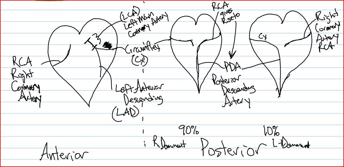 * important to understand what coronary arteries feed which part of the heart so that can you can try to determine where blockage is occuring and what type of treatment to administer