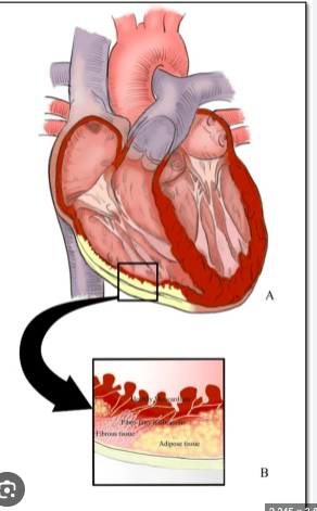 * the right ventricular myocardium is replaced by fatty and fibrofatty tissue