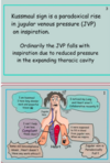 - raised JVP, crackles on lung auscultation, peripheral oedema