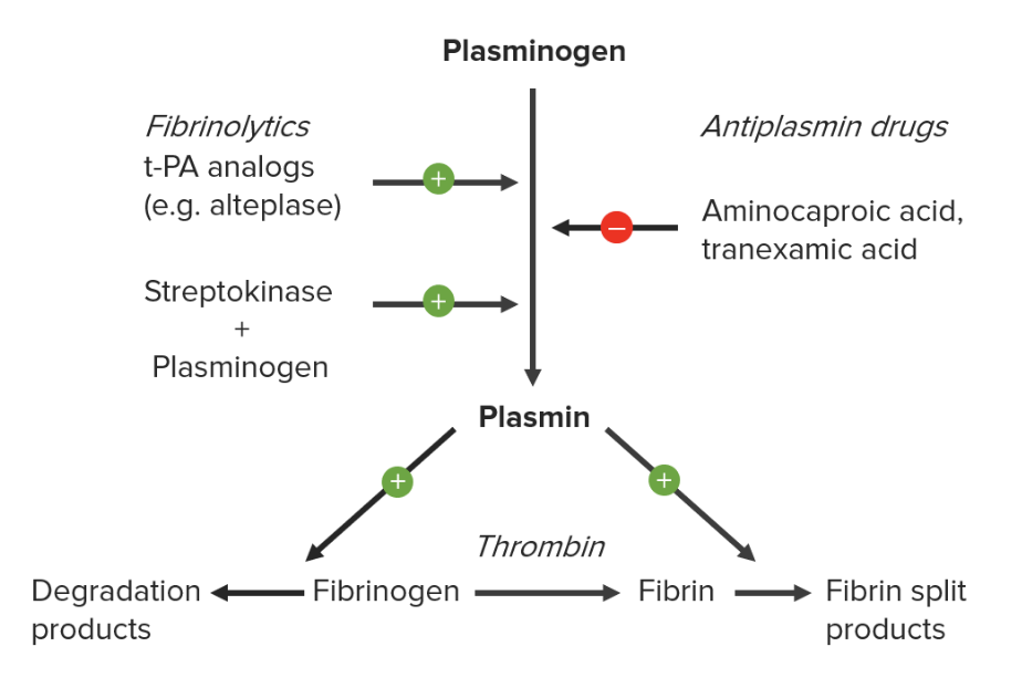 This is counterbalanced by plasmin derived from plasminogen. tPA is a natural fibrinolytic in epithelial cells. All thrombolytic agents are proteases cleaving plasminogen to plasmin.