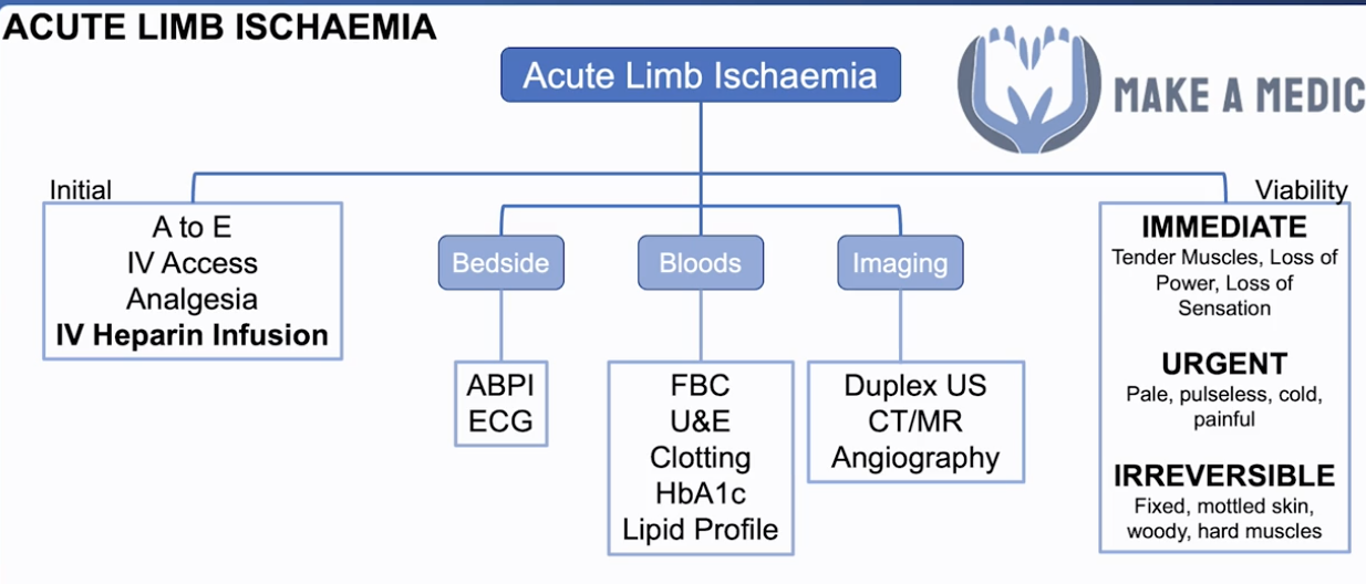 Acute limb ischaemia - Def? Presentation? Ix? Mx?