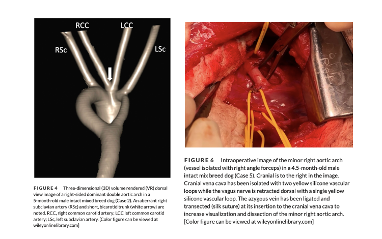 *** Surgical ligation of the lesser aortic arch in dogs and cats with double aortic arch was associated with a favorable prognosis for recovery, resolution of clinical signs and quality of life with only minor feeding modifications