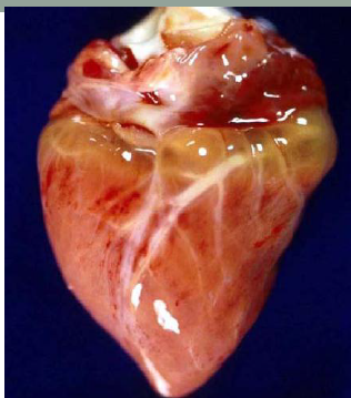 Epicardial fat has become yellow and gelatinous. Due to fat metabolism (starvation).