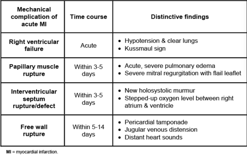 When does papillary muscle rupture following an MI typically occur and what are the distinct PE findings?
