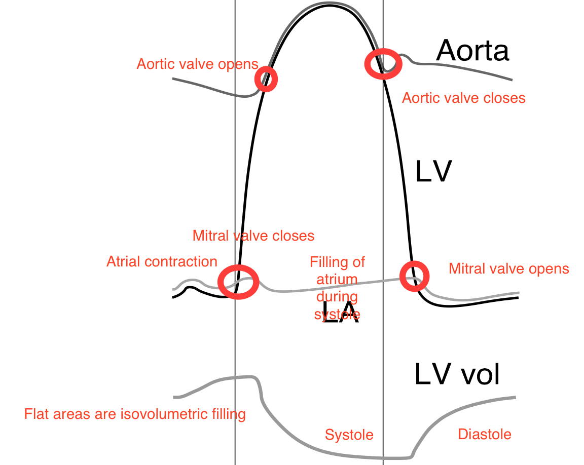 What does the systolic and left ventricle volume curve look like and its implication?