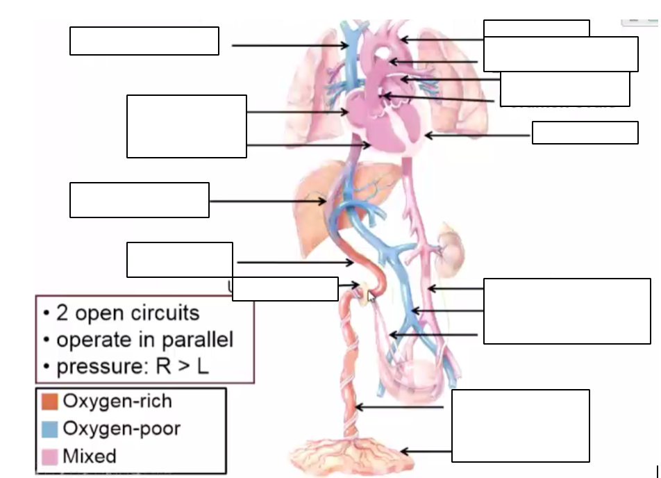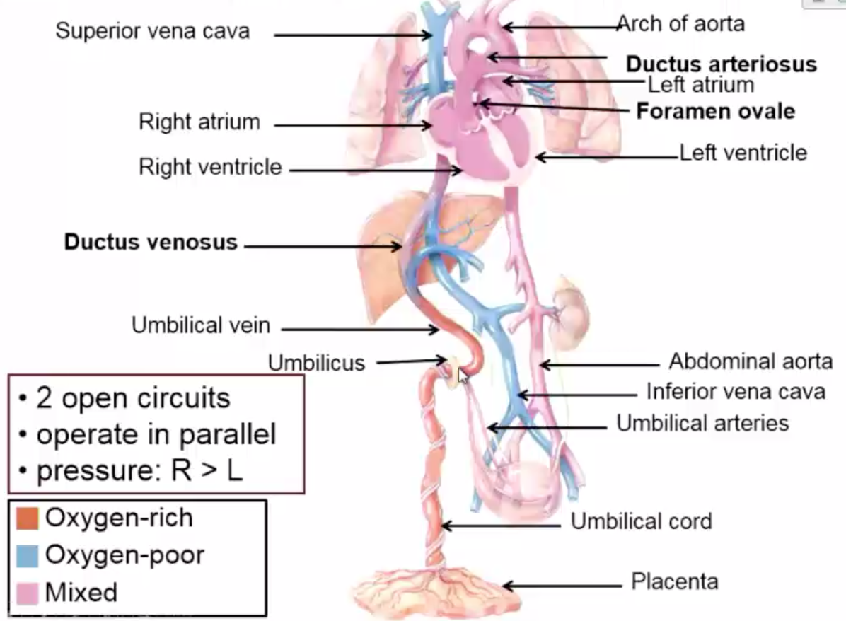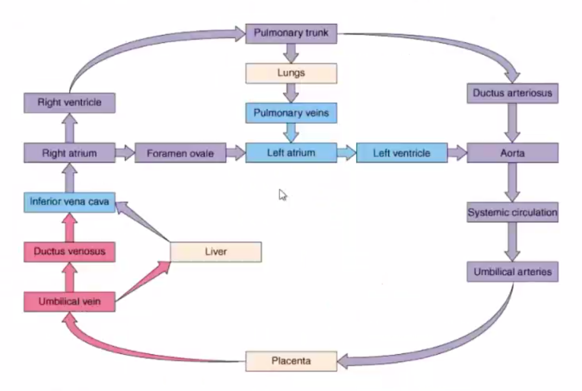 Describe blood flow from the placenta in fetal circulation (bypass)