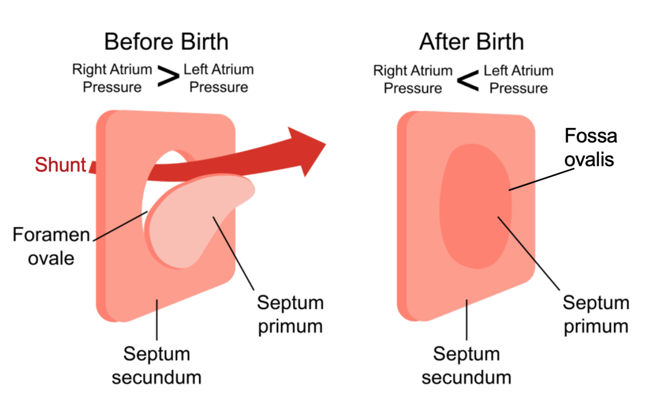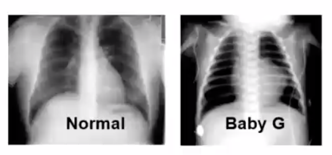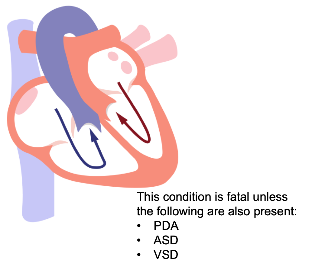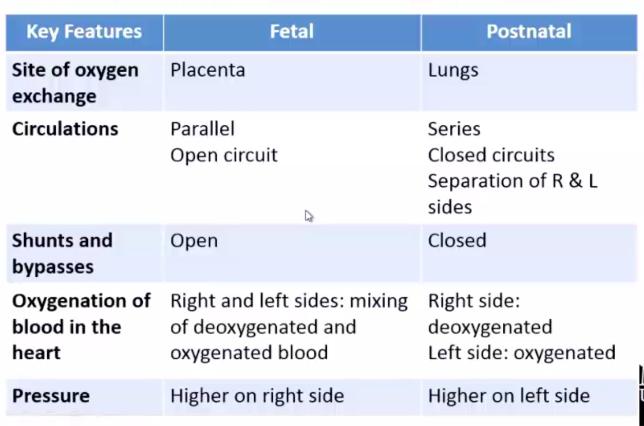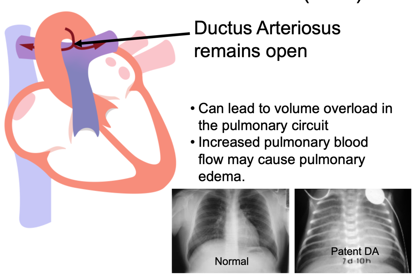 Baby G was born at term and seemed healthy the first few days. On the 4th day, the baby turned progressively cyanotic. Oxygen administration did not improve her colour. On chest x-ray, lungs looked dark. A harsh murmur was heard to the left of the upper sternum. What is occuring?