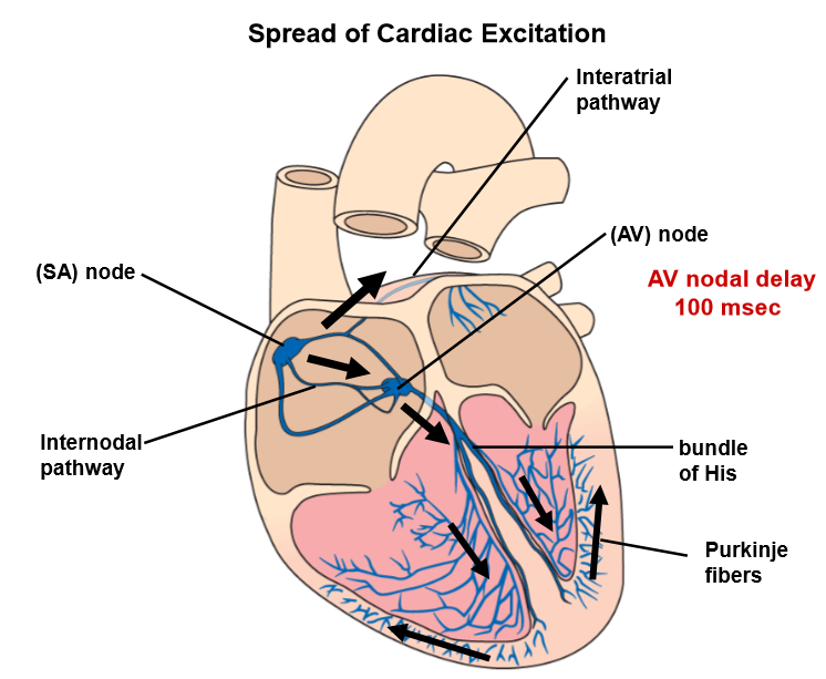 AV node fires action potential about 100msec
