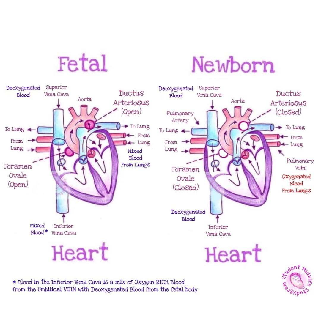 The circulation in a fetus includes three structures that close at birth. The first structure is the ductus venosus (allows most of the blood to bypass the immature liver of the developing baby and empty directly into the inferior vena cava). The other two structures allow most of the blood to bypass the developing lungs: The foramen ovale (shunts blood from the right atrium to the left atrium) and the ductus arteriosus (connects the aorta and the pulmonary artery).