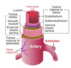 Tunica media (smooth muscle tissue in the middle);